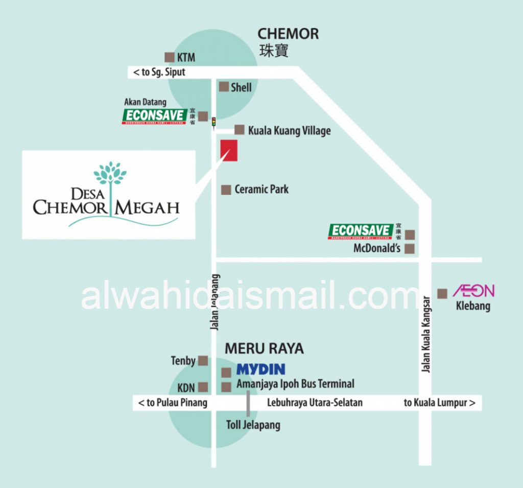 Rumah mampu milik ini juga berdekatan dengan Bandar Meru Raya dan kota Chemor yang dipenuhi dengan pelbagai kemudahan perbandaran lengkap yang mengagumkan dan sejumlah gerai komersial yang banyak. Semua ini terletak dalam jarak 10 kilometer dari pusat perumahan.